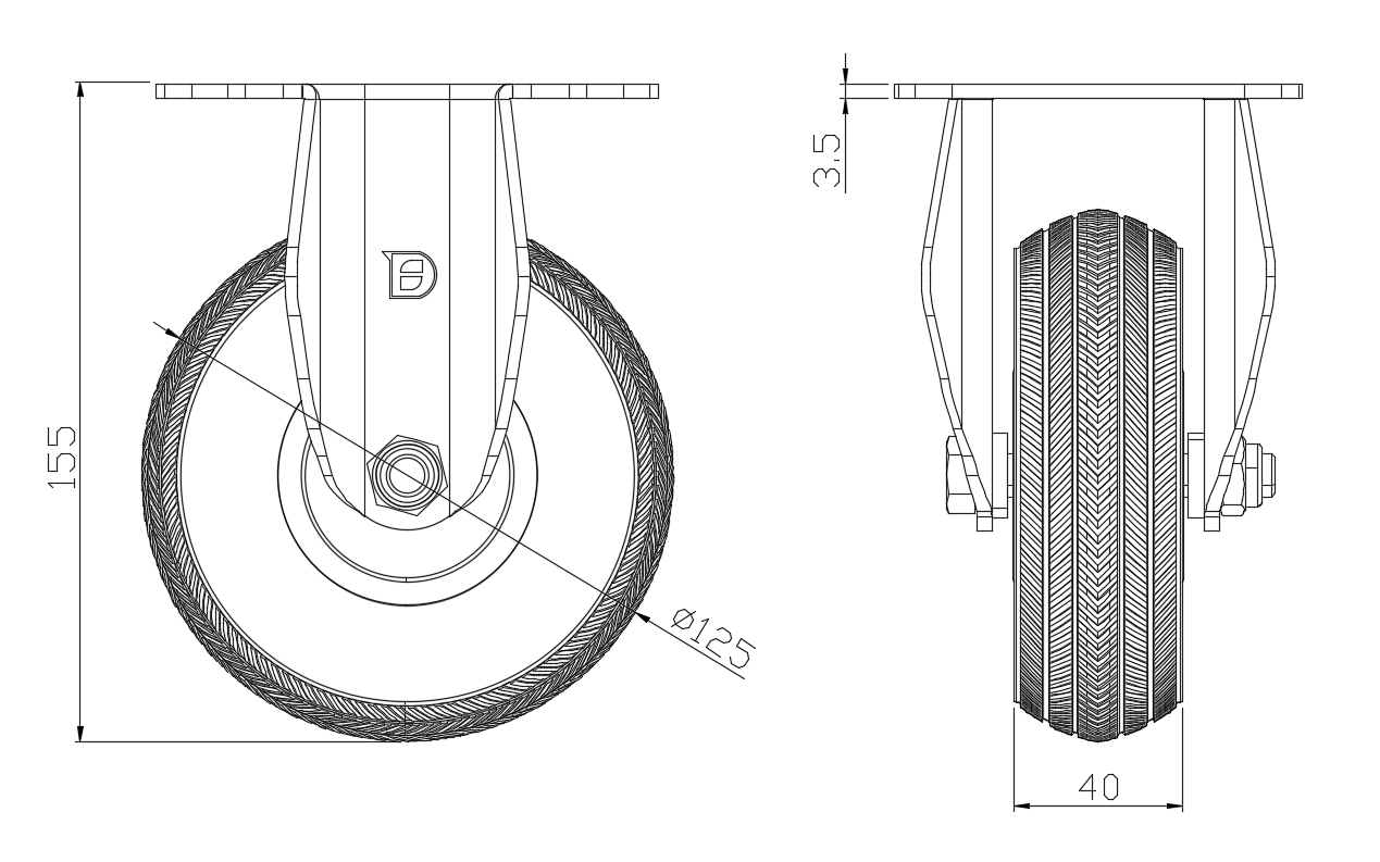| SX Rubber Wheel Diameter × Wheel Width 125 x 40mm |