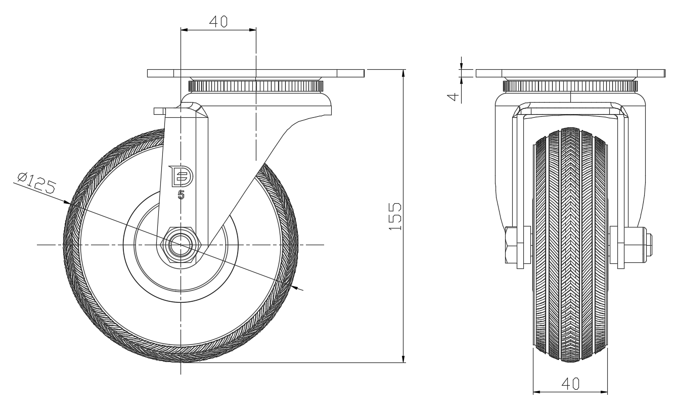 | SX Rubber Wheel Diameter × Wheel Width 125 x 40mm |