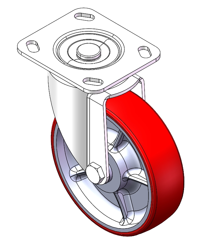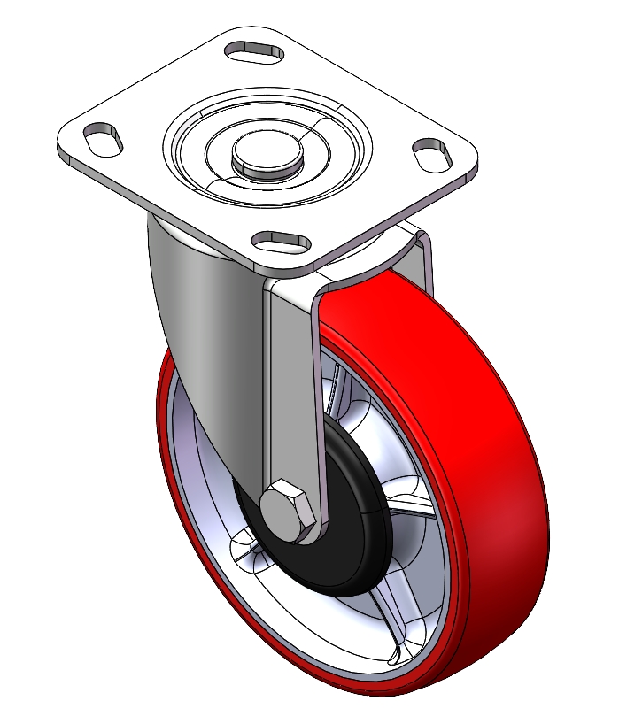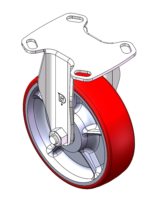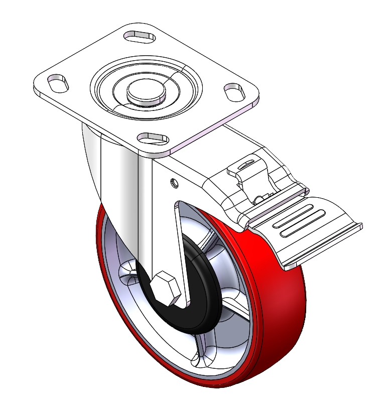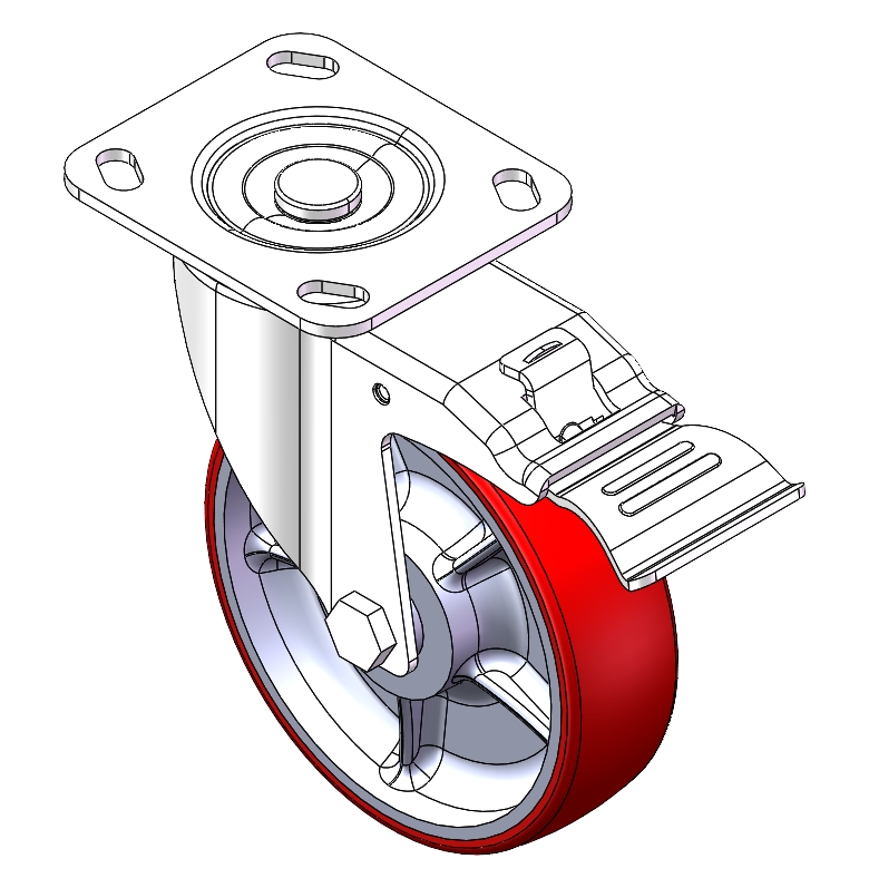 | Casters with Total Brakes and a Locking system. Top Plate with Riveted, Stamping Fork and 85 x 70mm (3-3/8" x 2-3/4") Bolt Hole Spacing. Zine-Plated, Top Plate (4T) Mounting Type system. Cast Iron Wheel Center with High Quality Polyurethane tread. Red Cast Iron finish, Bearing with Ball Bearing. |