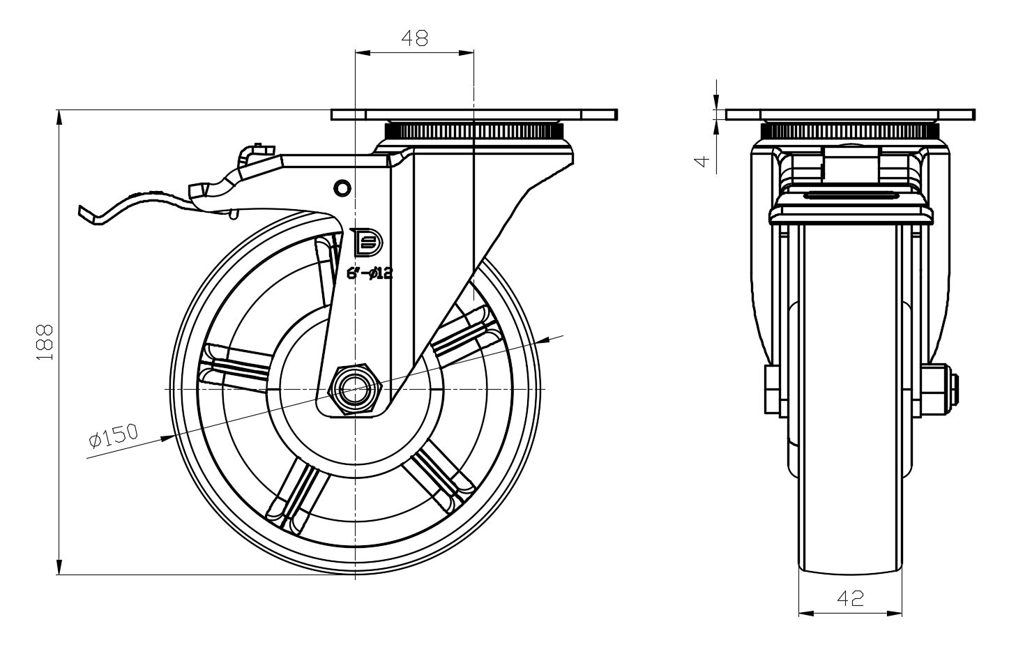 | Wheel tread: Made of high-quality polyurethane Wheel Center: cast iron core Drawings are for reference only and may differ from the product |