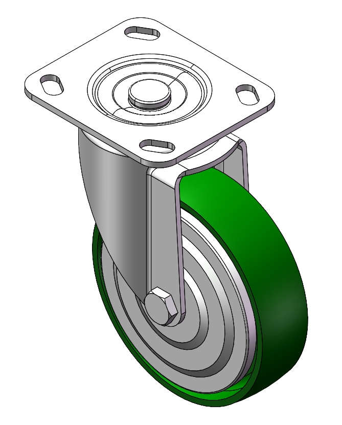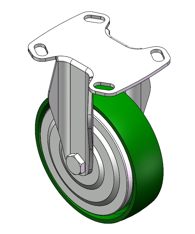 | Rigid Caster, Stamping Fabricated Caster Fork - D-type hole Extended control lever surface, Top Plate (3.5T) installation device Cast Iron Wheel Center and Wheel Tread Green, Bearing - Ball Bearing. |