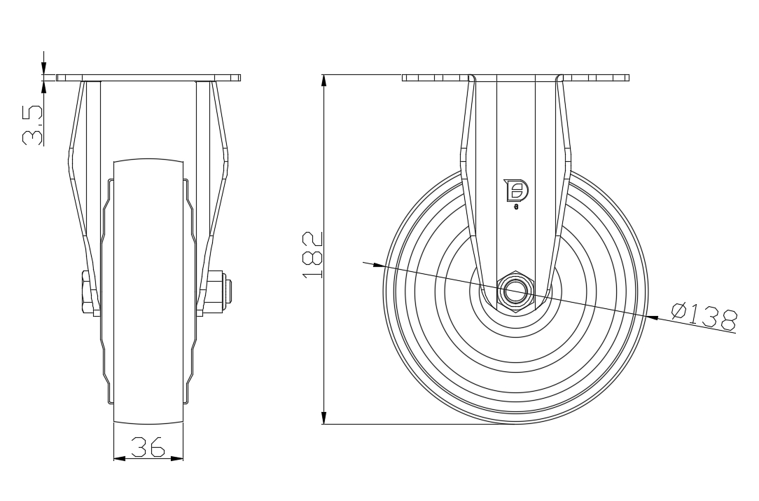| Cast Iron (Green) Wheel Diameter × Wheel Width 138 x 36mm |