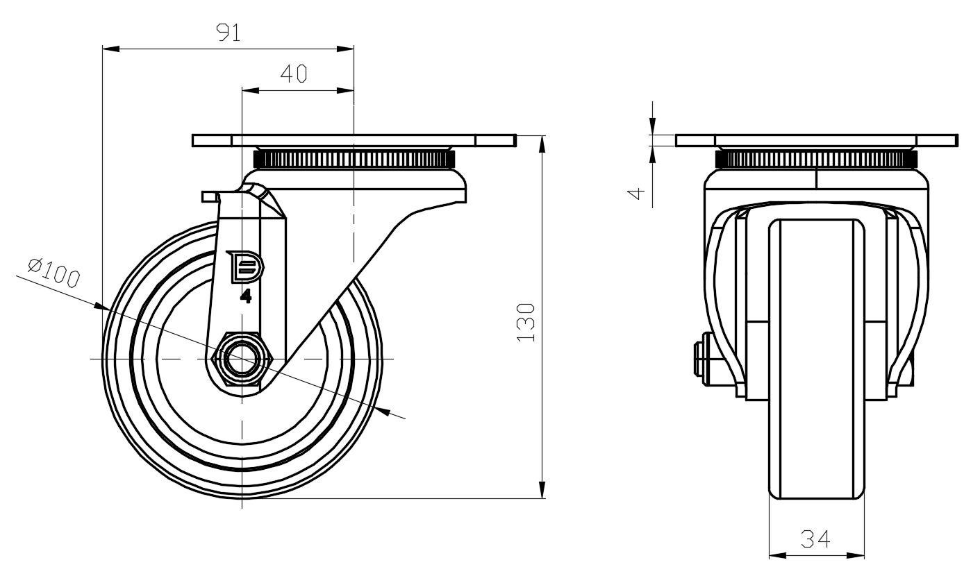 | QPU (Brown flat) Wheel Diameter × Wheel Width 100 x 34mm |
