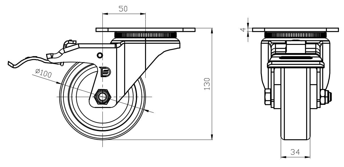 | Wheel tread: Made of high-quality polyurethane Wheel Center: cast iron core Drawings are for reference only and may differ from the product |