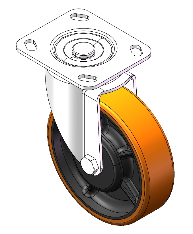 | Rigid Caster with integral Stamping Fork and 85 x 70mm (3-3/8" x 2-3/4") Bolt Hole Spacing. Zine-Plated, Top Platestyle (3.5T) Mounting Type system. Cast Iron Wheel Center with High Quality Polyurethane tread. Brown color, Ball Bearing. |