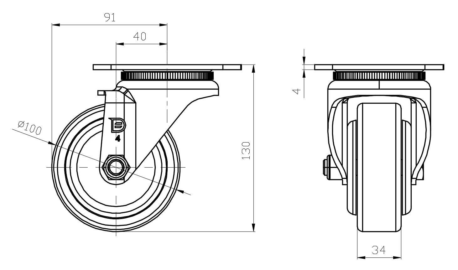 | Wheel tread: Made of high-quality polyurethane Wheel Center: cast iron core Drawings are for reference only and may differ from the product |