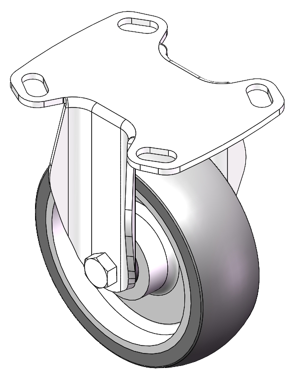 | Rigid castor, Stamping Fabricated Caster Fork - 75 x 45 mm (3" x 1-3/4") Bolt Hole Spacing Surface Zine-Plated, Top Plate Mounting Type Aluminum core, High Quality Polyurethane Wheel Tread Grey, Bearing - Ball Bearing. |
