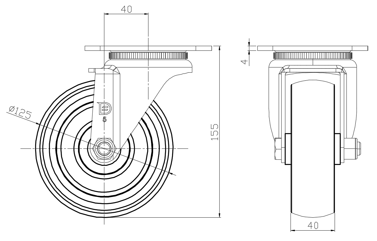 | AQPU (grey round) Wheel Diameter × Wheel Width 125 x 40mm |