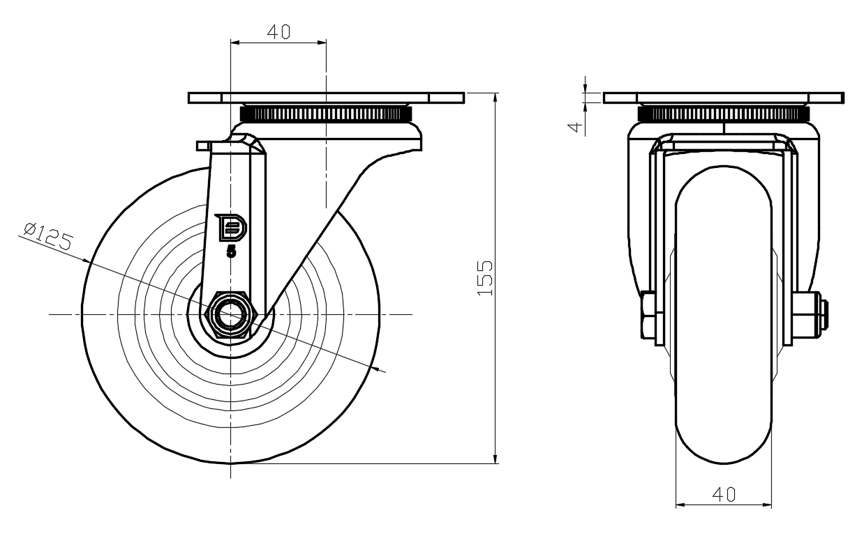 | Wheel tread: Made of high-quality polyurethane Wheel Center: cast iron core Drawings are for reference only and may differ from the product |
