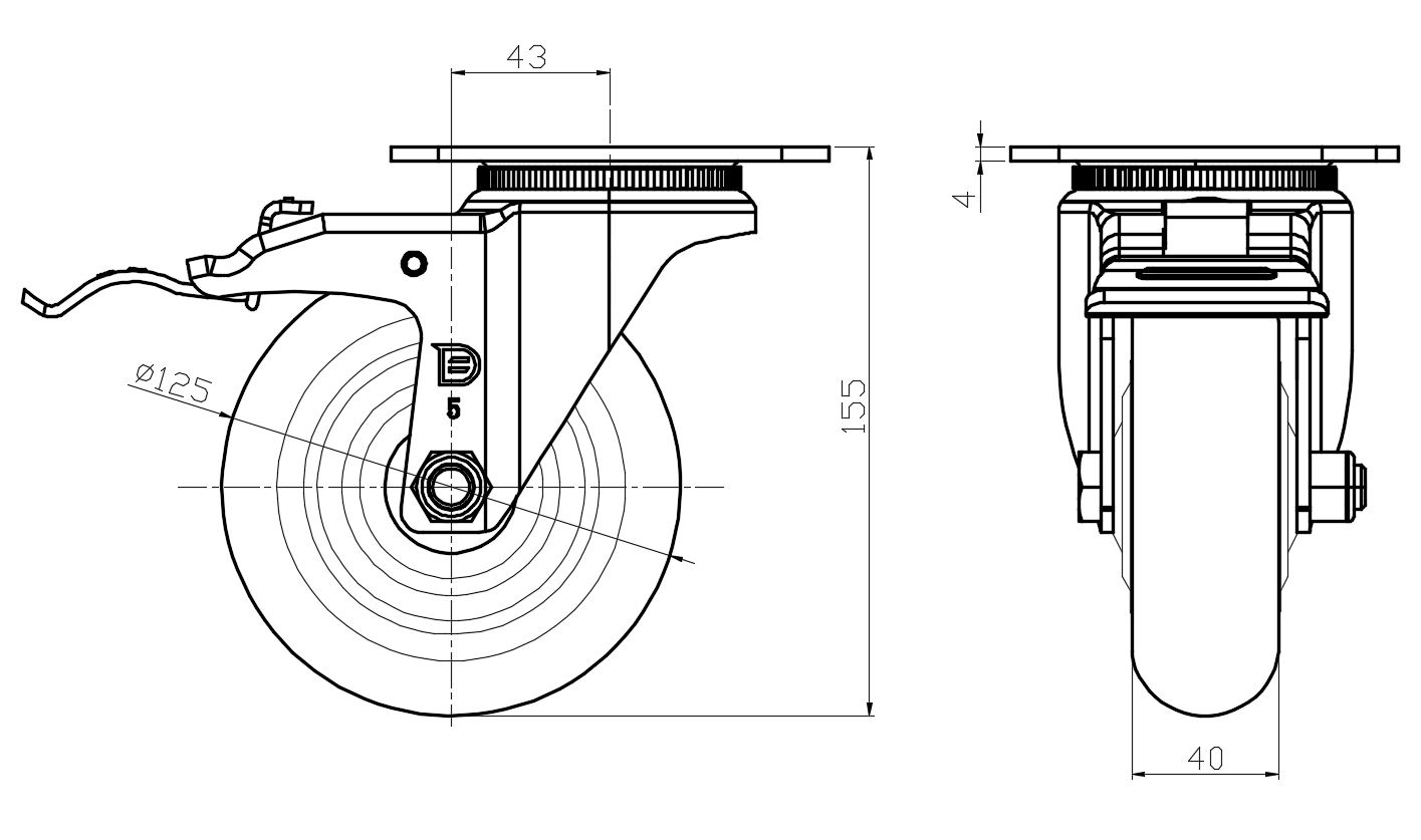 | Wheel tread: Made of high-quality polyurethane Wheel Center: cast iron core Drawings are for reference only and may differ from the product |