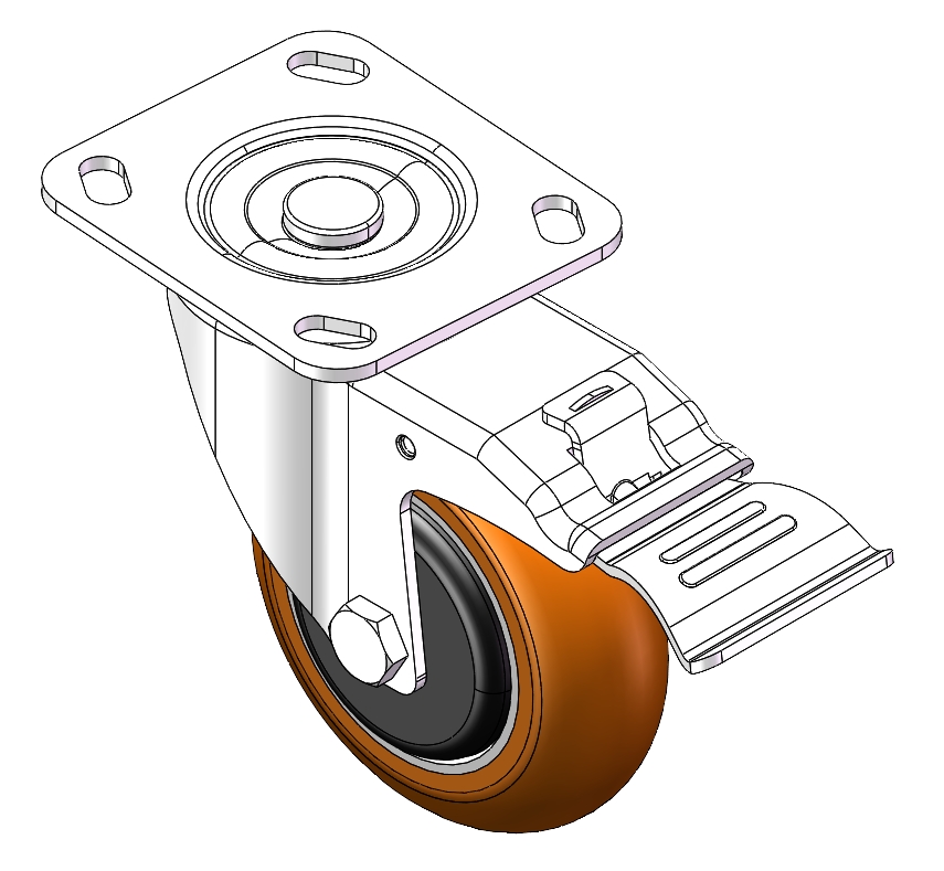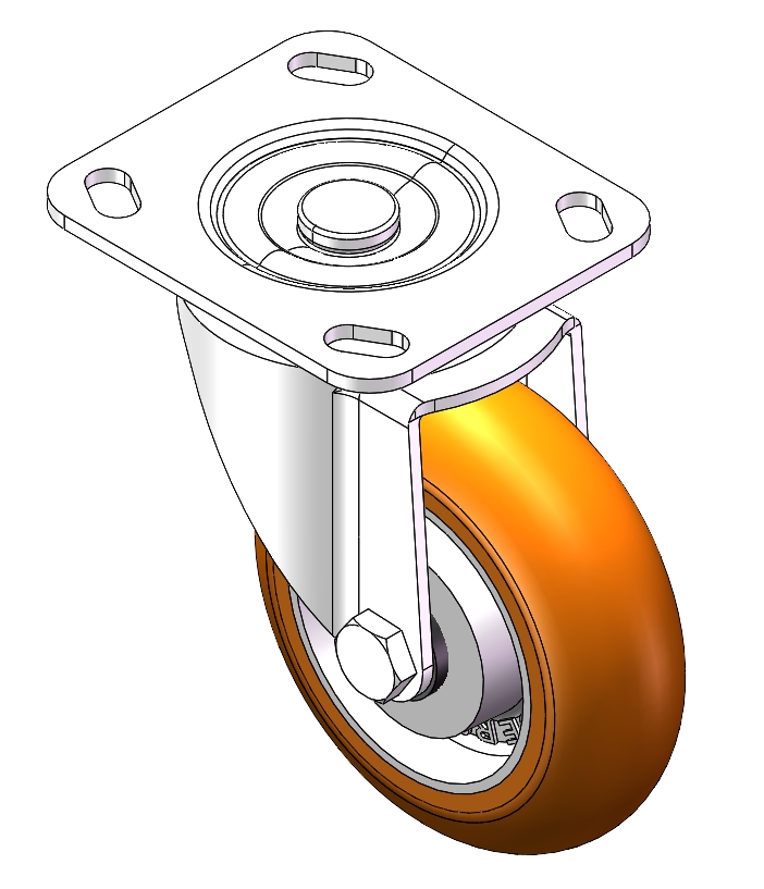 | Swivel Caster with Riveted Fork and Stamping Fork - 85 x 70mm (3-3/8" x 2-3/4") Bolt Hole Spacing Zine-Plated, Fork-mounted (4T) Mounting Type system Cast Iron Wheel Center, High Quality Polyurethane tread Brown, Bearing - Ball Bearing. |