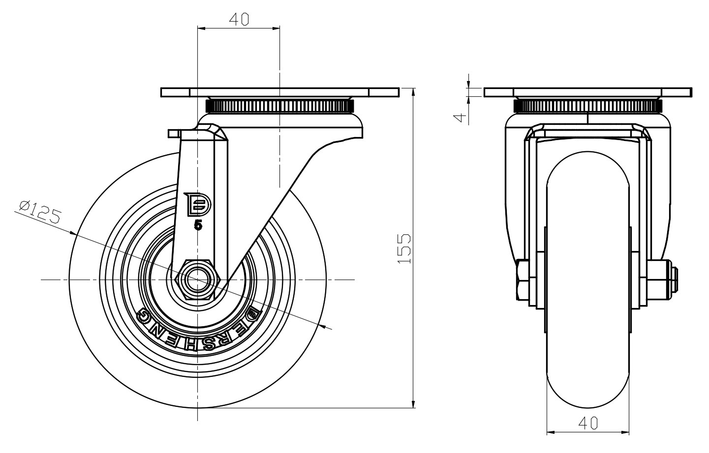 | EQPU (Brown round) Wheel Diameter × Wheel Width 125 x 40mm |