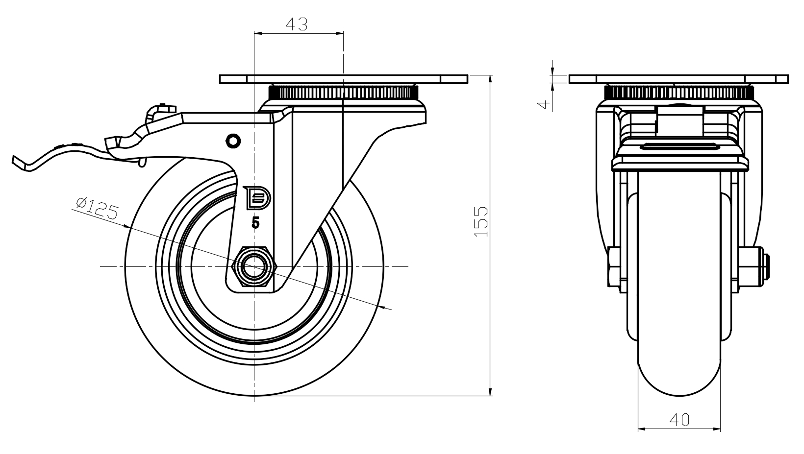 | EQPU (Brown round) Wheel Diameter × Wheel Width 125 x 40mm |