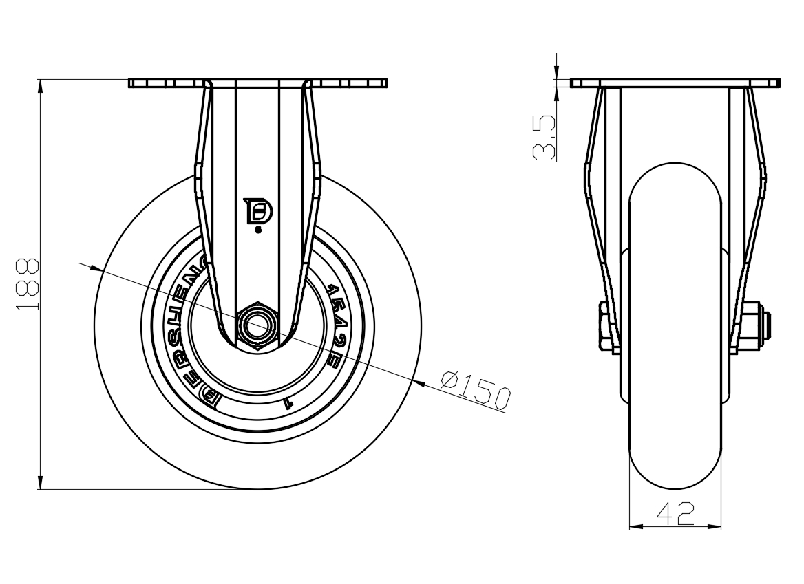 | Wheel tread: Made of high-quality polyurethane Wheel Center: cast iron core Drawings are for reference only and may differ from the product |