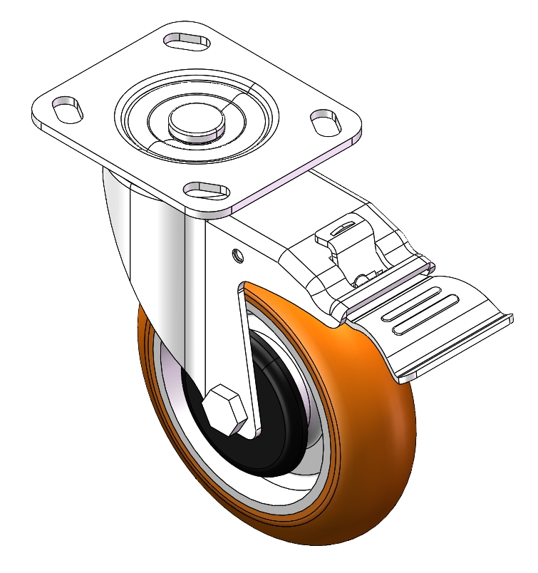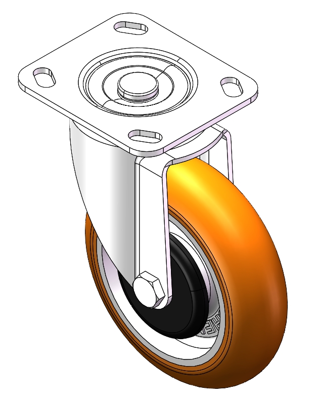 | Swivel Caster with Riveted Fork and Stamping Fork - 85 x 70mm (3-3/8" x 2-3/4") Bolt Hole Spacing Zine-Plated, Fork-mounted (4T) Mounting Type system Cast Iron Wheel Center, High Quality Polyurethane tread Brown, Bearing - Ball Bearing. |