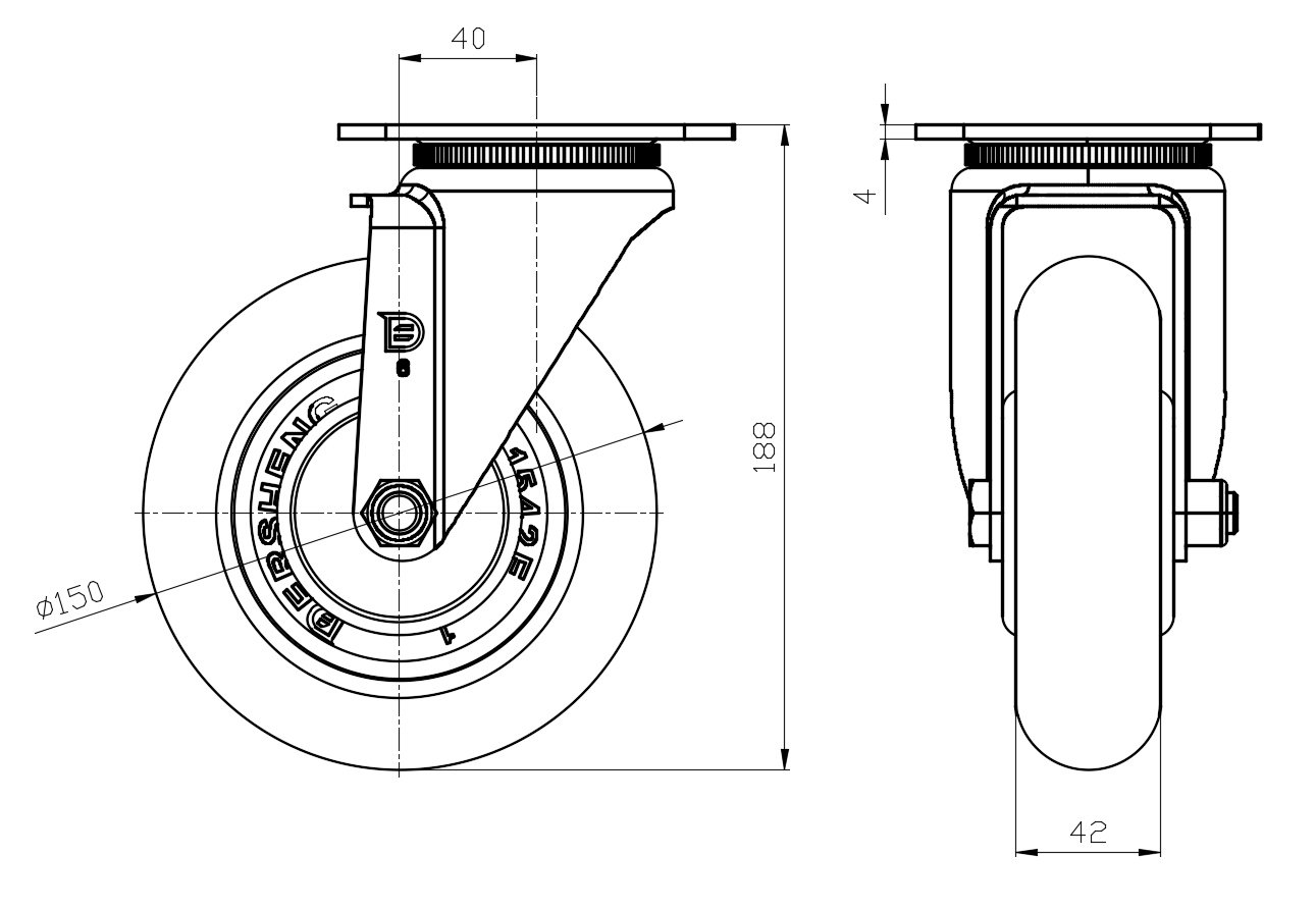 | Wheel tread: Made of high-quality polyurethane Wheel Center: cast iron core Drawings are for reference only and may differ from the product |