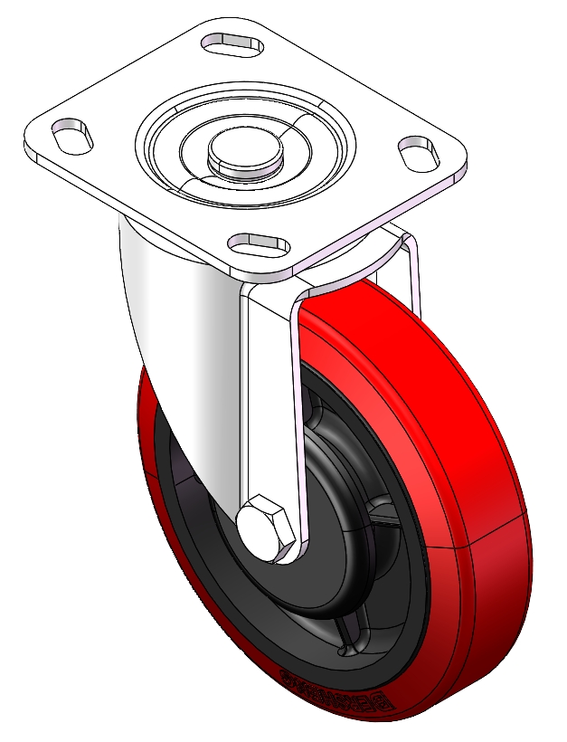 | Swivel Caster, Top Plate with Riveted Stamping bracket and D-shaped hole. Zine-Plated, Top Plate (4T) Mounting Type mechanism. Cast Iron Wheel Center with High-Quality Resilient Rubber tread. Red Cast Iron finish, Bearing with Ball Bearing. |