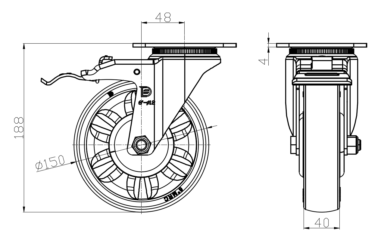 | Wheel tread: Thermoplastic (PA6) Wheel Center: Thermoplastic (PA6) Drawings are for reference only and may differ from the product |