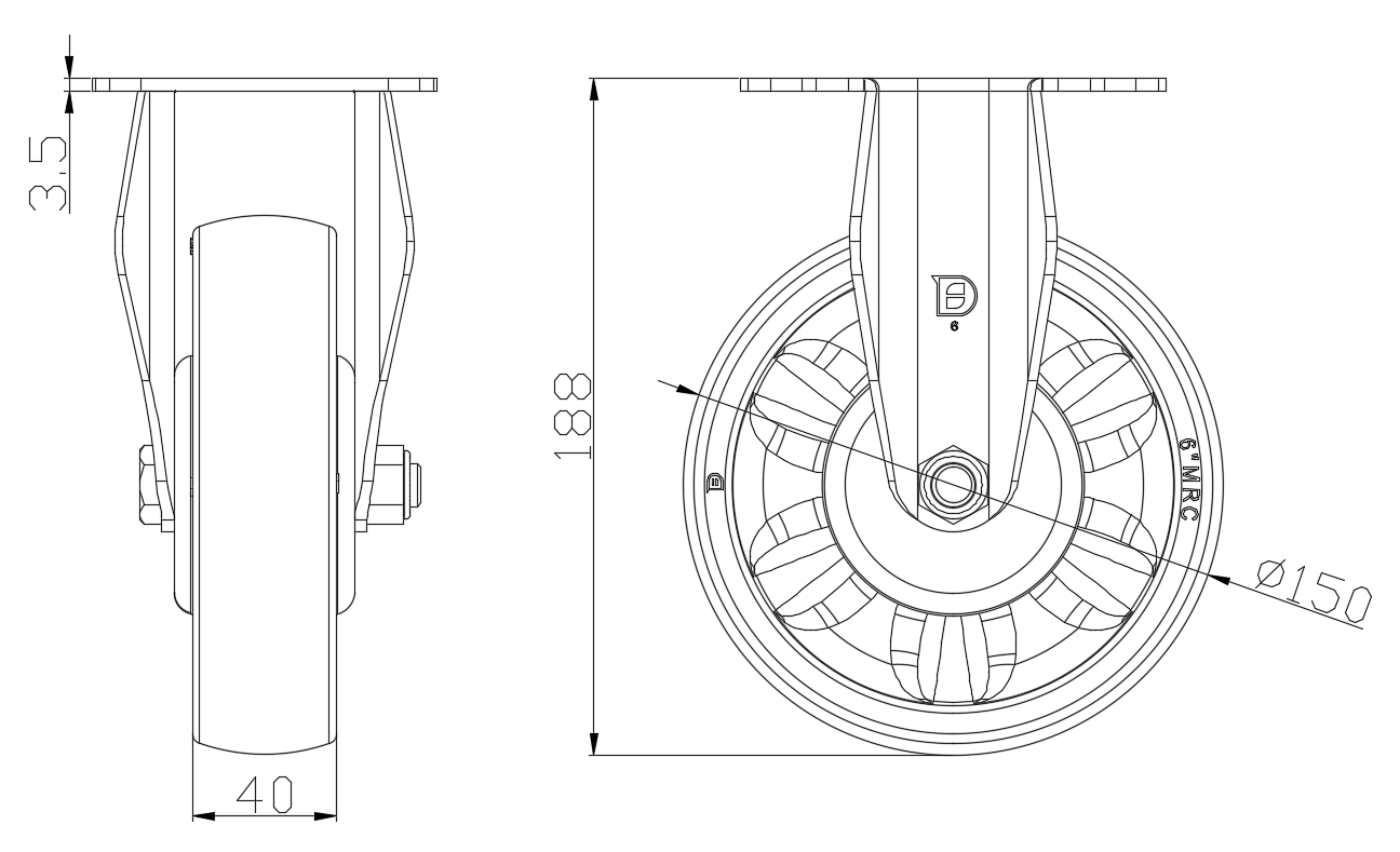 | Bánh xe WMRC (trong suốt) Đường kính bánh xe × Chiều rộng bánh xe 150 x 40mm |