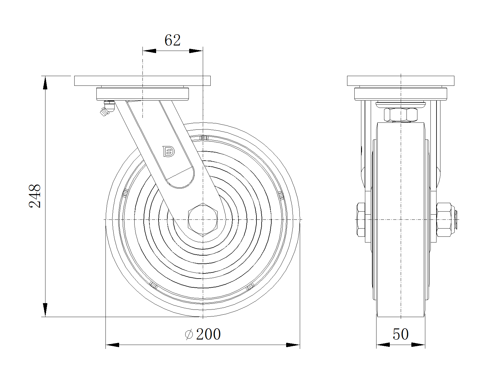 | Wheel tread: Made of high-quality polyurethane Wheel Center: iron core/cast iron core Drawings are for reference only and may differ from the product |