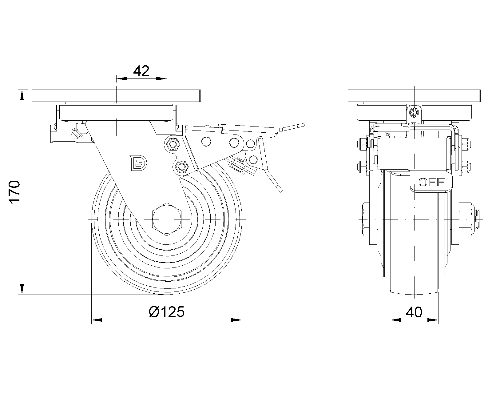 | QPU (Brown round) Wheel Diameter × Wheel Width 125 x 40mm |