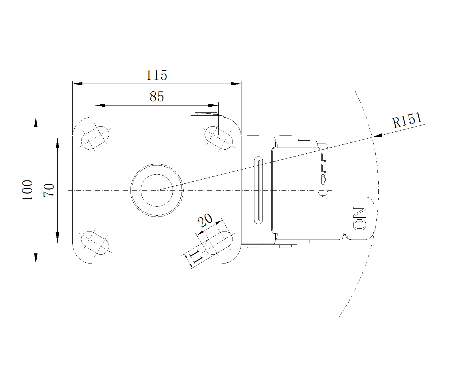 | Castors with Front Brake locking system, Welded Caster Fork Surface sprayed with blue paint, Mounting Type - Top Plate, Hole spacing 85x70 Cast Iron Wheel Center, High Quality Polyurethane Wheel Tread Iron brown, Bearing - Ball Bearing. |