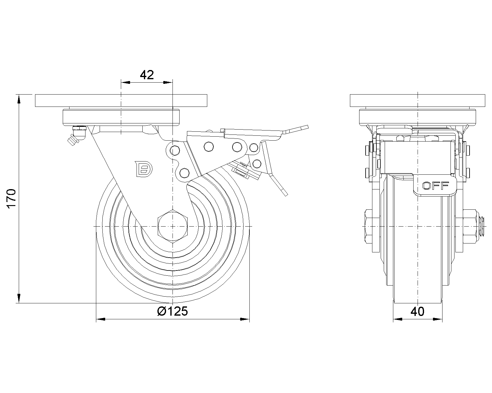 | QPU (brown flat) Wheel Diameter x Wheel Width 125 x 40mm |