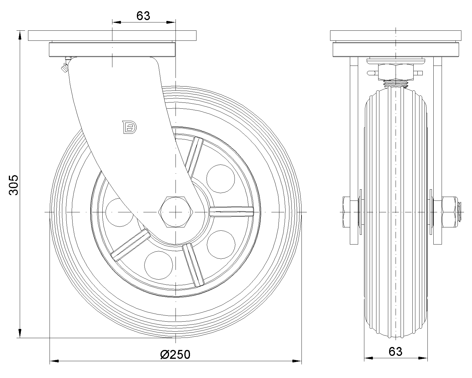 | Non-marking NBR Rubber (milling) Wheel Diameter x Wheel Width 250 x 63mm |