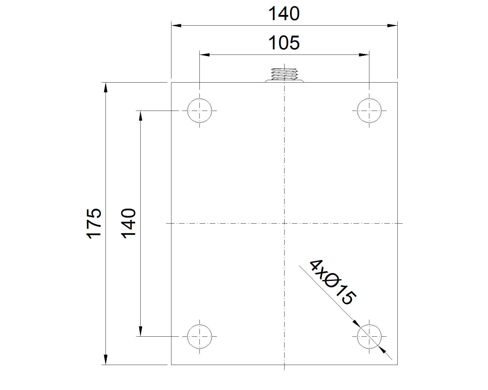| Rigid Caster with Welded Caster Fork and blue paint finish. Mounting Type - Top Plate, 140x105mm Bolt Hole Spacing. Cast Iron Wheel Center with High Quality Polyurethane tread, Cast Iron red. Bearing: Precision ball bearings. |