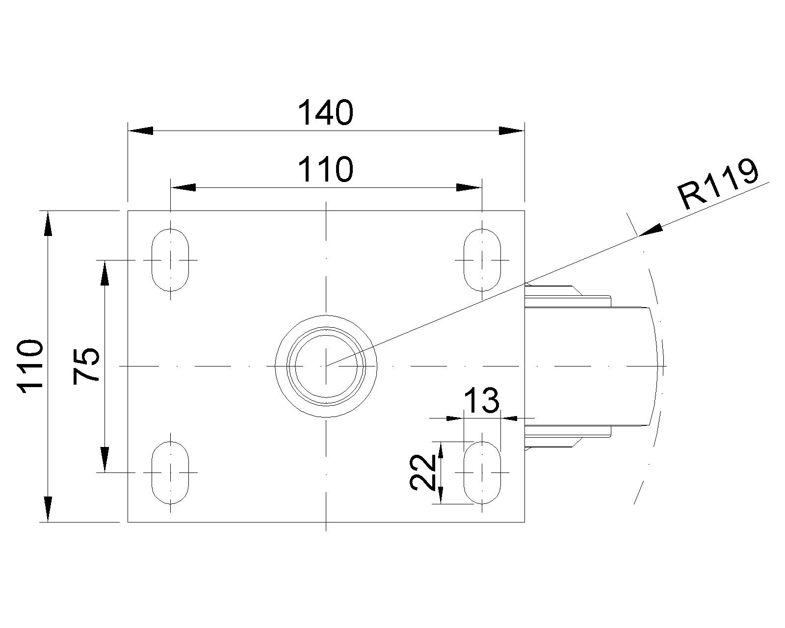 Lắp đế, khoảng cách lỗ 110x75. Lõi gang với gai polyurethane chất lượng cao, phay màu nâu. Vòng bi bánh xe—vòng bi cầu chính xác. |