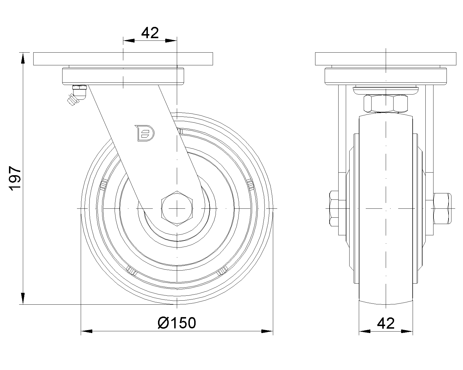 | Bánh xe QPU (Màu nâu vòng cung) đường kính bánh xe × chiều rộng bánh xe 150 x 42mm |