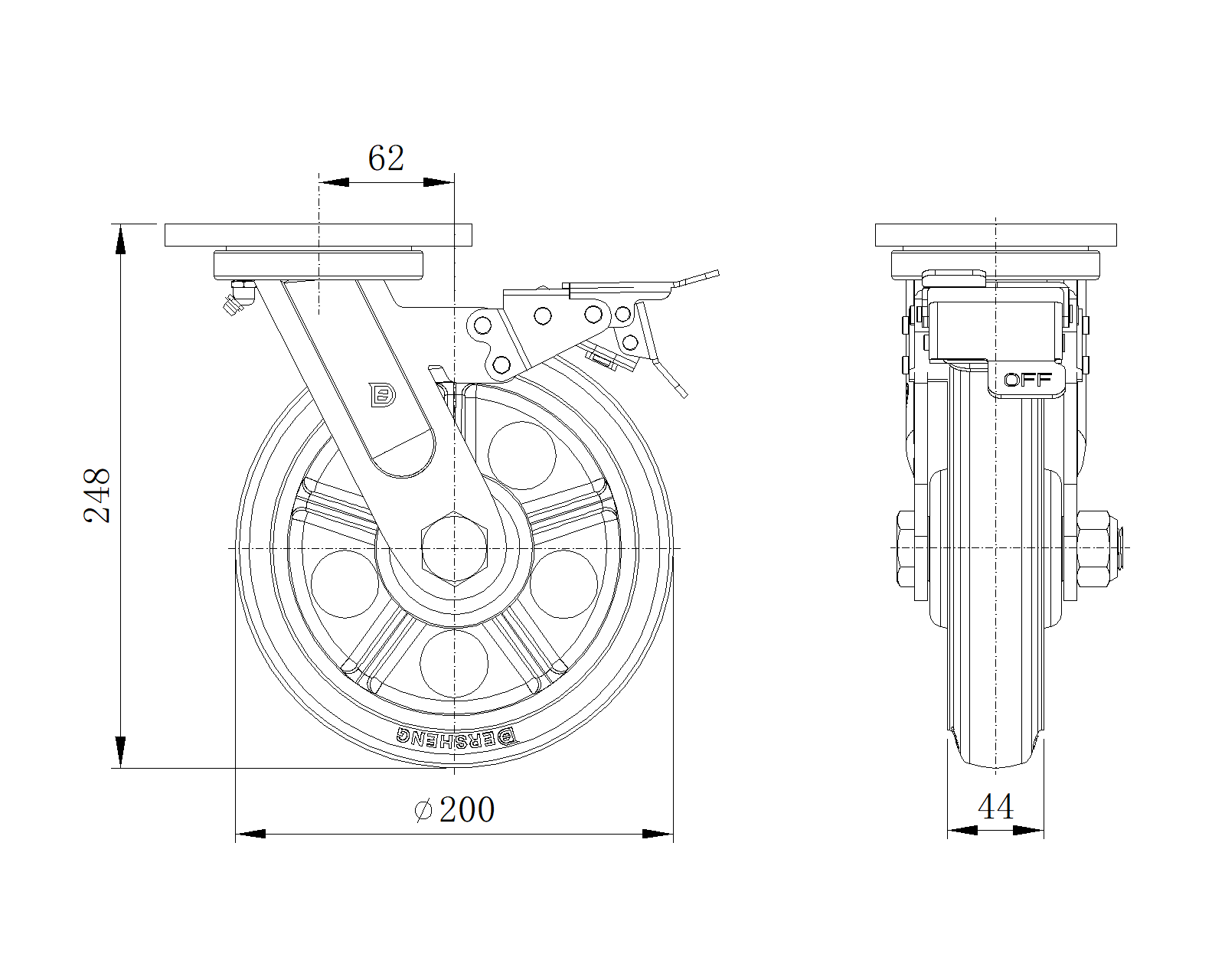 | Kéo NBR Wheel (Mill Raw) Đường kính bánh xe × Chiều rộng bánh xe 200 x 44mm |