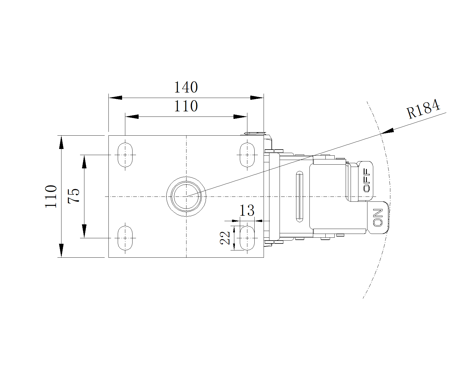 Lắp đế, khoảng cách lỗ 110x75 Lõi bánh xe bằng gang, gai cao su đàn hồi cao chất lượng cao, phay màu tự nhiên Vòng bi bánh xe—vòng bi cầu chính xác |