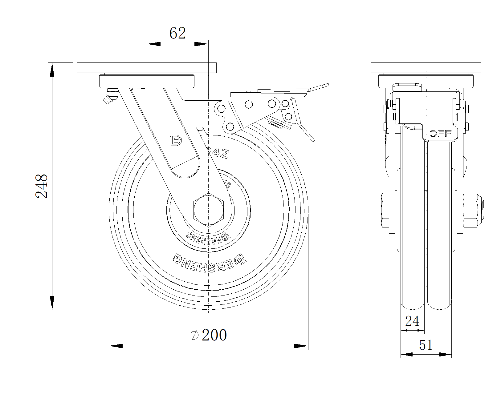 | Bánh xe ZQPU (hồ quang nâu) Đường kính bánh xe × Chiều rộng bánh xe 200 x 24 (51) mm |