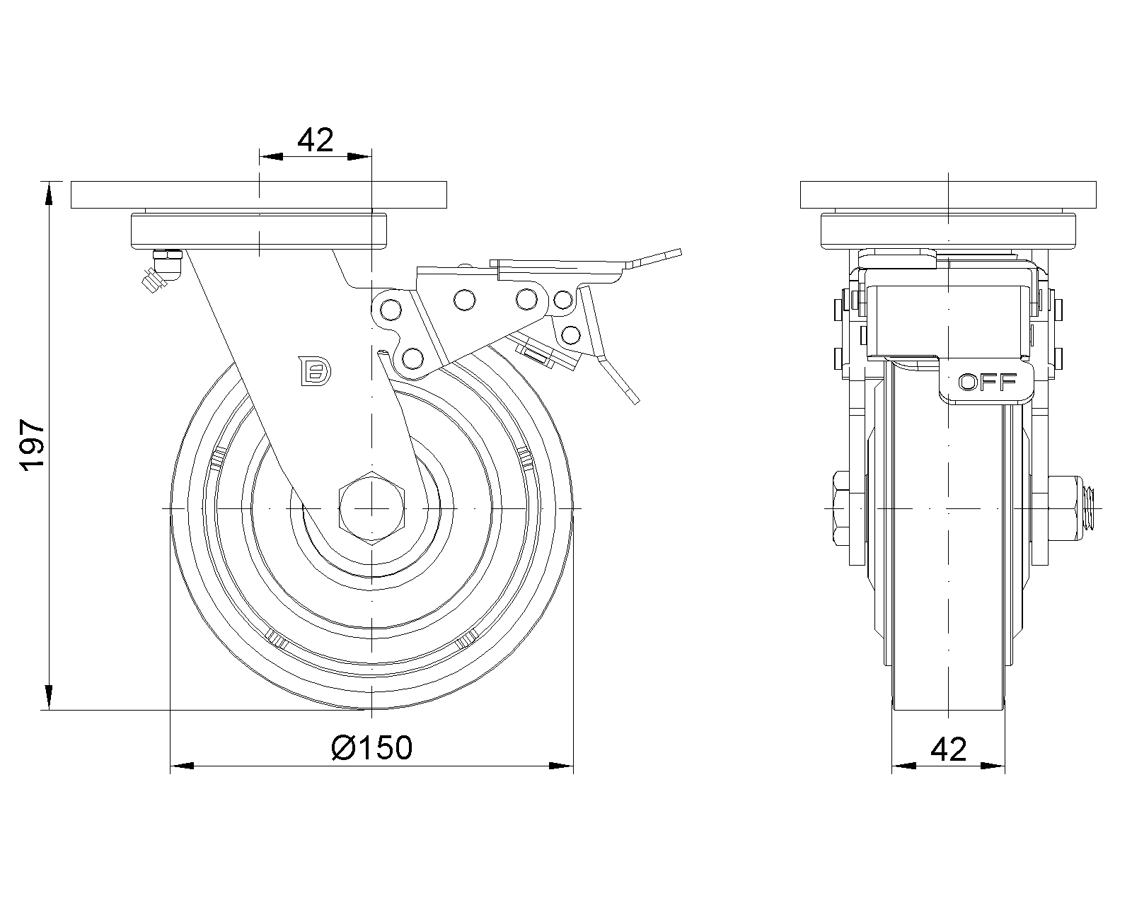 | Bánh PU (Đỏ Bình) Đường kính bánh × Chiều rộng bánh 150 × 42 mm |