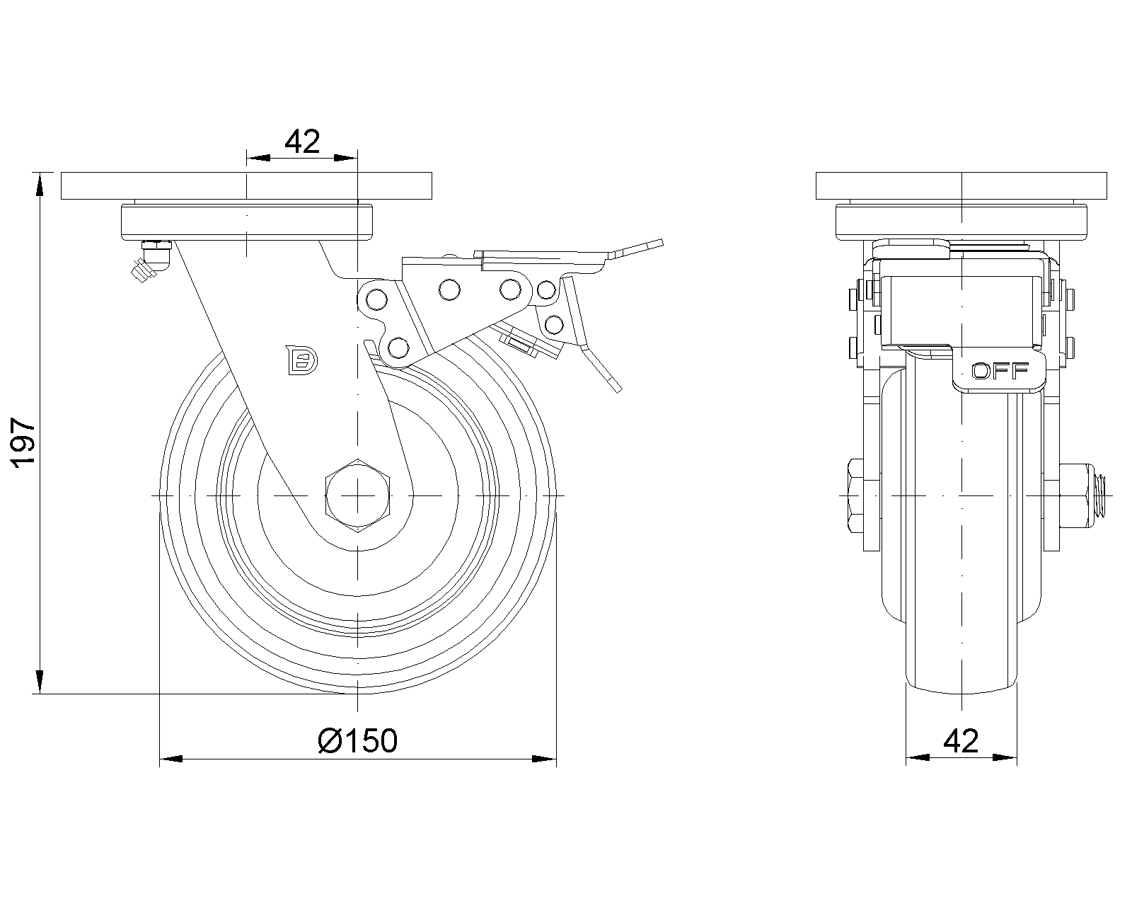 | Bánh xe VXPU (vòng cung đỏ rượu) Đường kính bánh xe × Chiều rộng bánh xe 150 x 42mm |