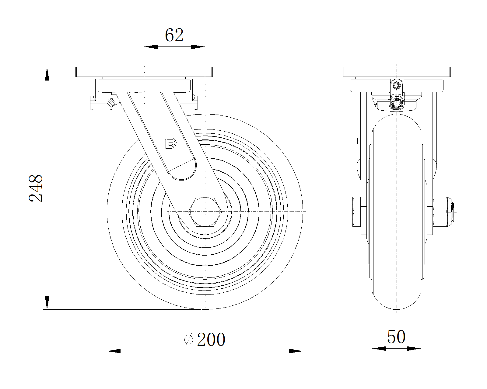 | Bánh xe EQPU (hồ quang nâu) Đường kính bánh xe × Chiều rộng bánh xe 200 x 50mm |