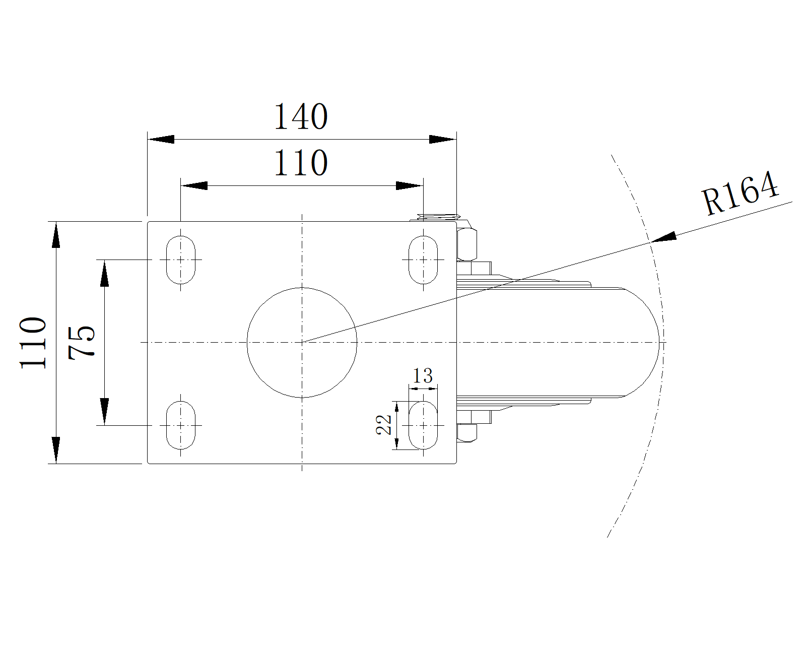 Bề mặt phun sơn màu xanh, thiết bị lắp đặt tấm đáy, khoảng cách lỗ 110x75 Lõi bánh xe làm bằng gang, bề mặt bánh xe bằng polyurethane chất lượng cao, phay màu nâu Vòng bi bánh xe—vòng bi bi chính xác |
