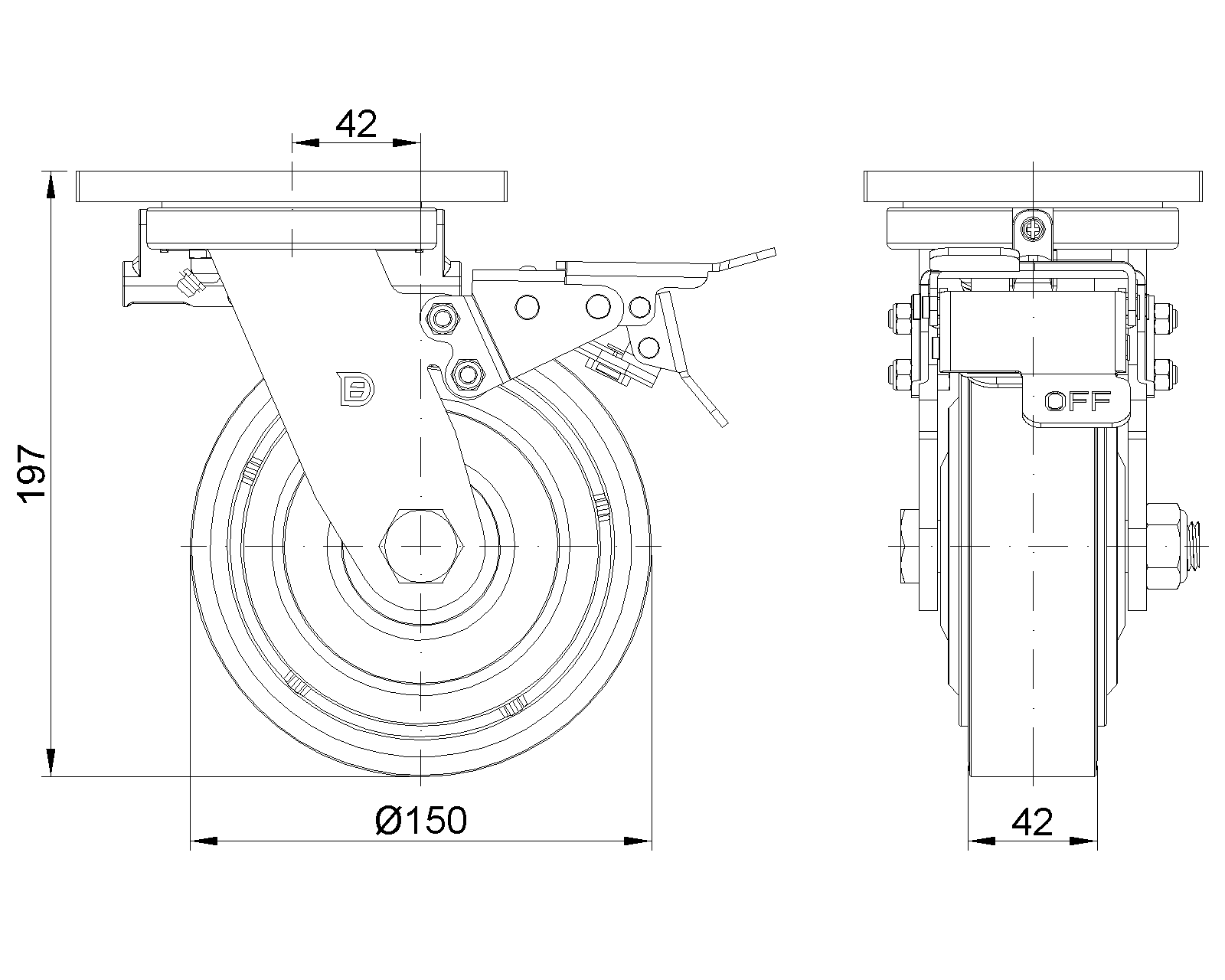 | Bánh xe QPU (nâu phẳng) Đường kính bánh xe × Chiều rộng bánh xe 150 x 42mm |