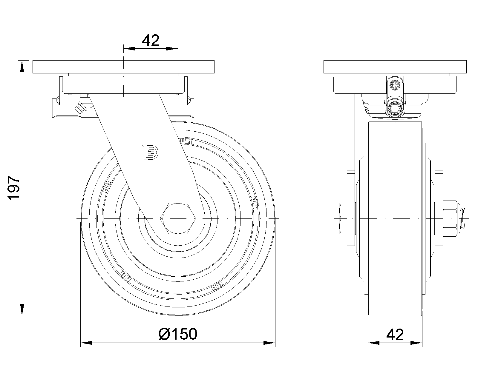 | Bánh xe QPU (nâu phẳng) Đường kính bánh xe × Chiều rộng bánh xe 150 x 42mm |