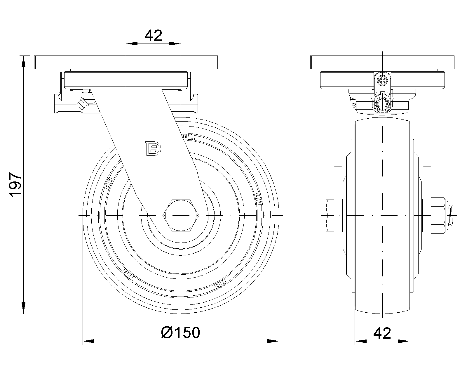 | Bánh xe QPU (Màu nâu vòng cung) đường kính bánh xe × chiều rộng bánh xe 150 x 42mm |