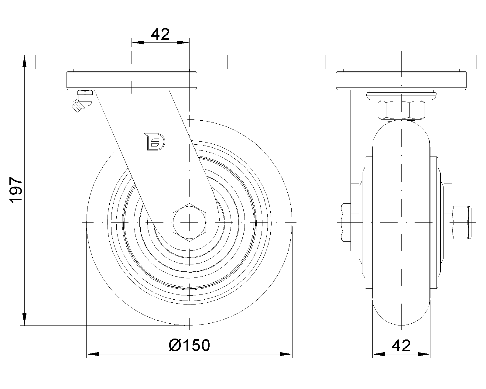 | Bánh xe EQPU (hồ quang nâu) Đường kính bánh xe × Chiều rộng bánh xe 150 x 42mm |
