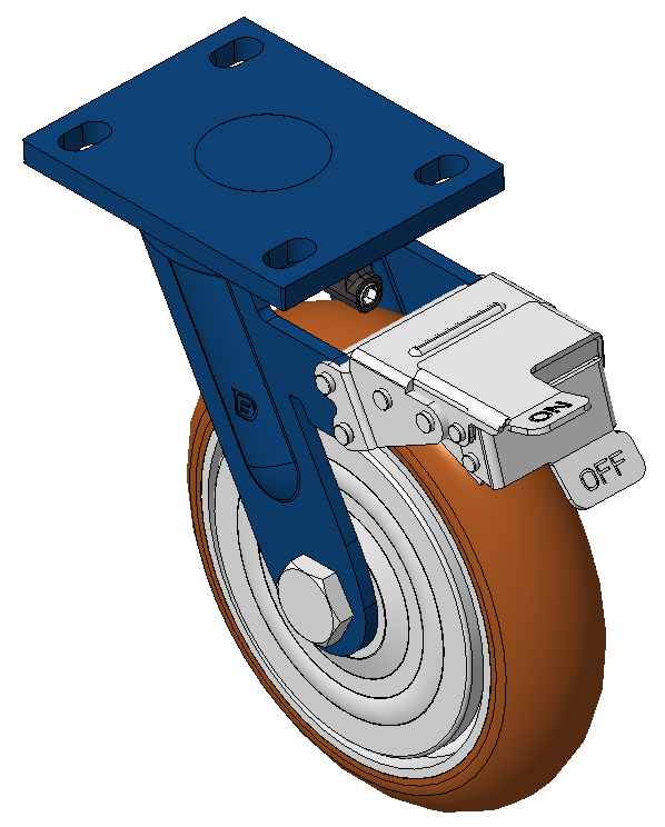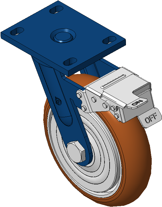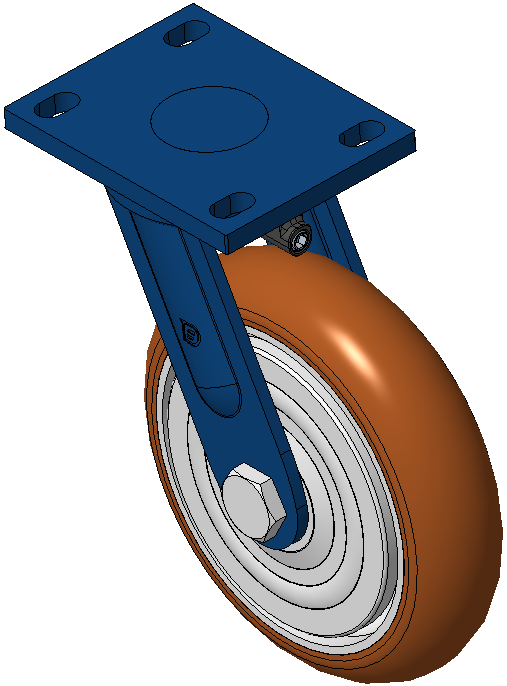 Hoàn thiện sơn xanh, lắp đế, khoảng cách lỗ 110x75 Lõi bánh xe bằng gang, gai polyurethane chất lượng cao, màu nâu phay Vòng bi bánh xe—vòng bi cầu chính xác |