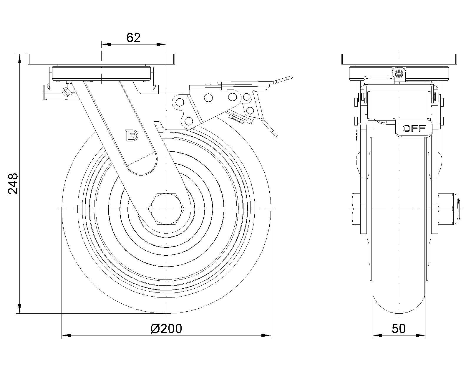 | Bánh xe EQPU (hồ quang nâu) Đường kính bánh xe × Chiều rộng bánh xe 200 x 50mm |