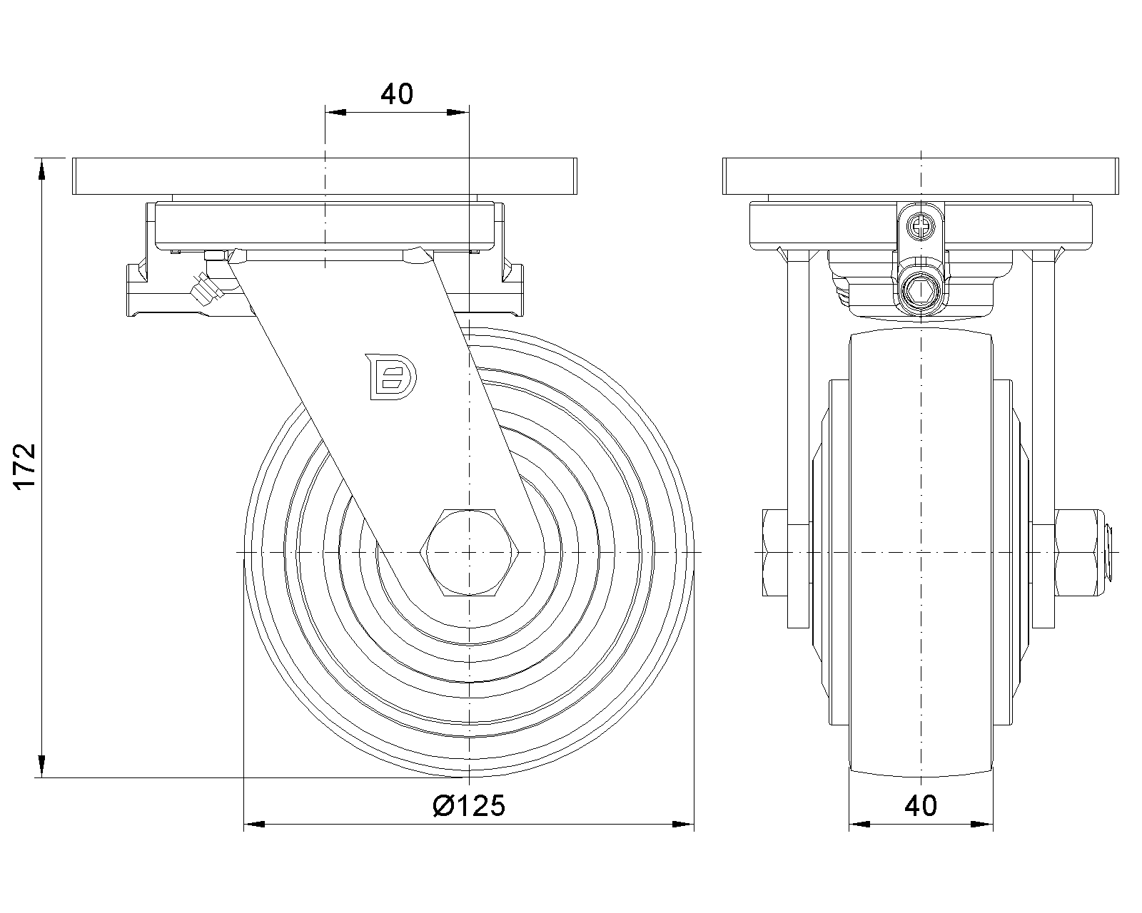 | Bánh xe QPU (nâu phẳng) Đường kính bánh xe × Chiều rộng bánh xe 125 x 40mm |