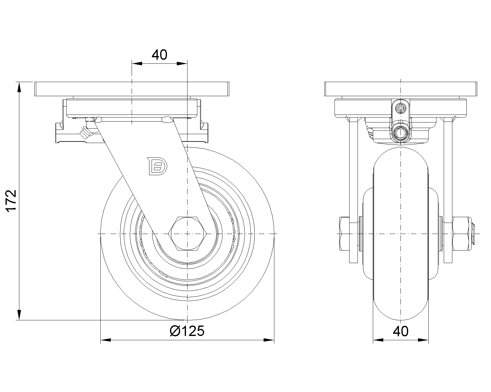 | EQPU Bánh xe (Màu nâu vòng cung) đường kính bánh xe × chiều rộng bánh xe 125 x 40mm |