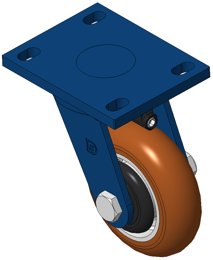 Bề mặt phun sơn màu xanh, thiết bị lắp đặt tấm đáy, khoảng cách lỗ 110x75 Lõi bánh xe làm bằng gang, bề mặt bánh xe bằng polyurethane chất lượng cao, phay màu nâu Vòng bi bánh xe—vòng bi bi chính xác |