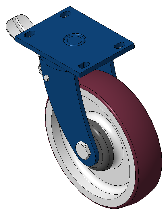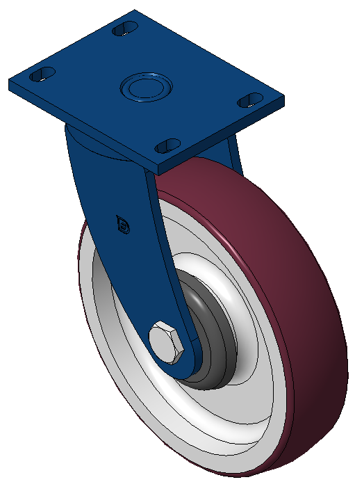 Lắp đế, khoảng cách lỗ 140x85 Lõi bánh xe bằng gang, gai polyurethane chất lượng cao, phay màu đỏ tía Vòng bi bánh xe—vòng bi cầu chính xác |