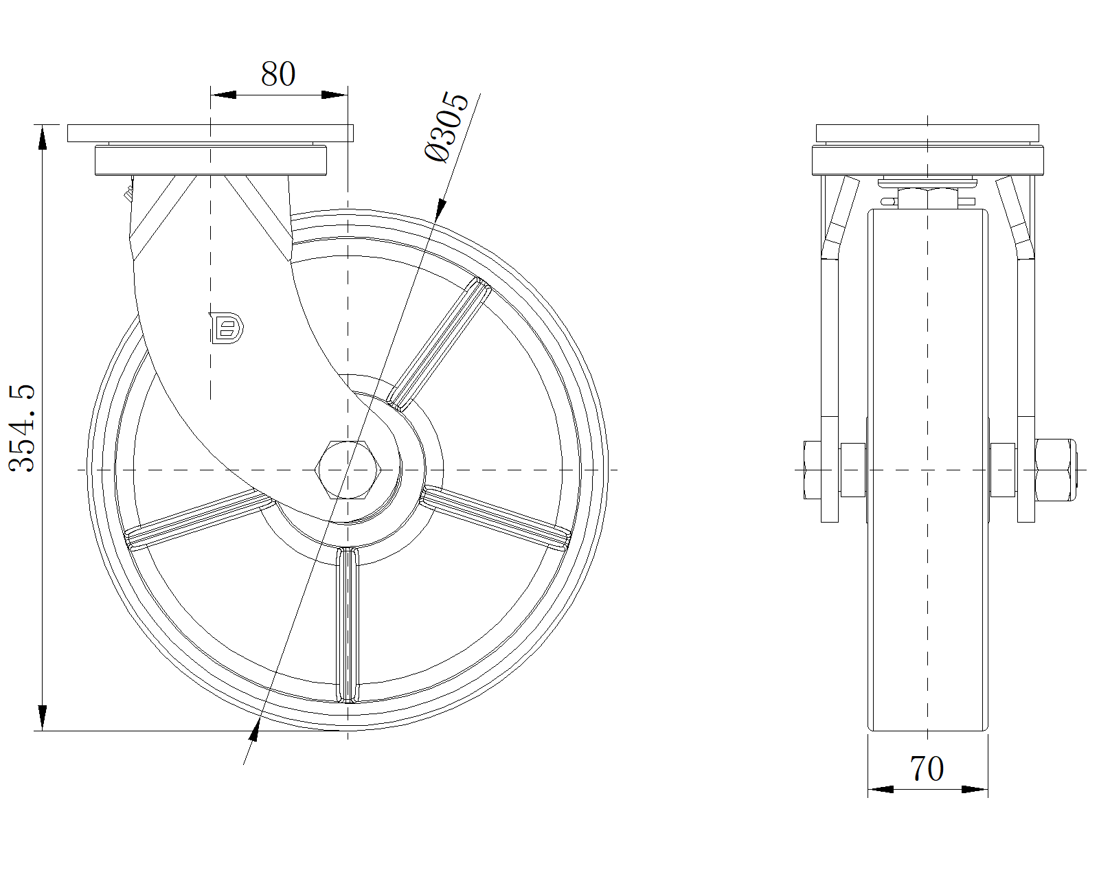 | Bánh xe QPU (nâu phẳng) Đường kính bánh xe × Chiều rộng bánh xe 305x 70mm |