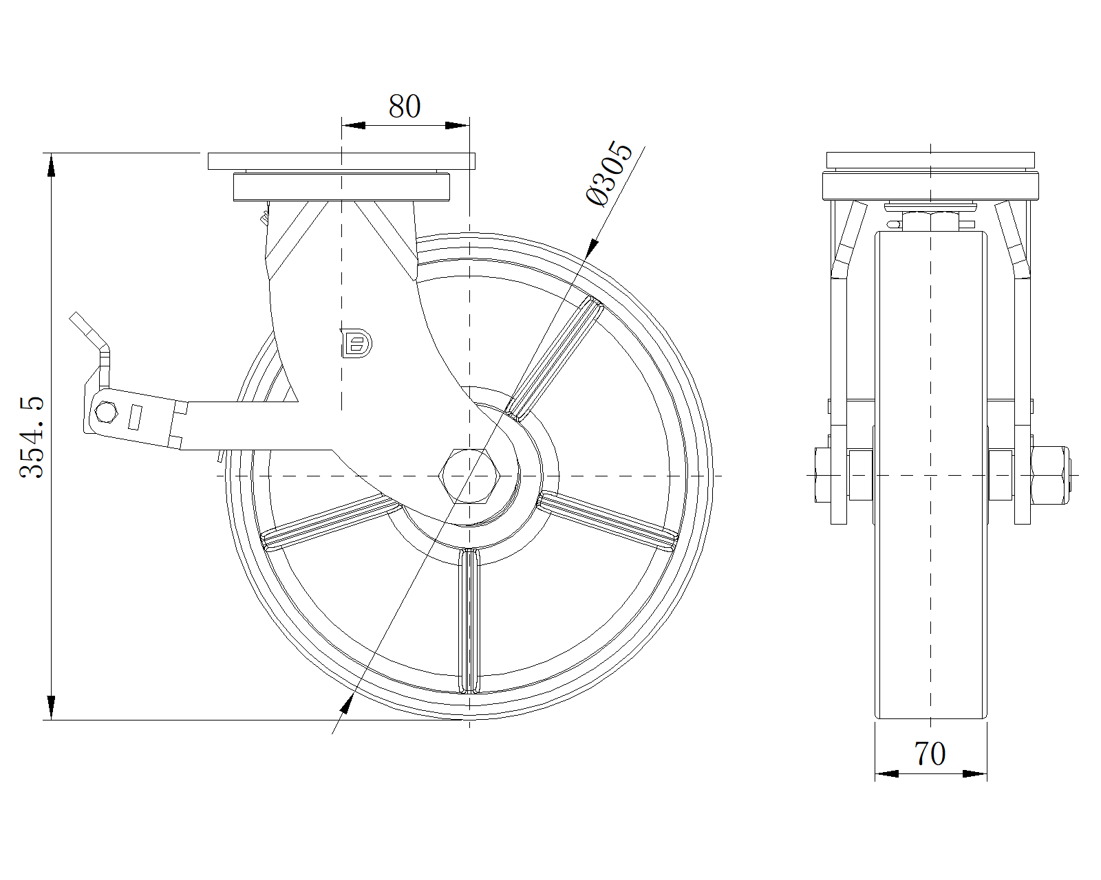 | Bánh xe QPU (nâu phẳng) Đường kính bánh xe × Chiều rộng bánh xe 305x 70mm |
